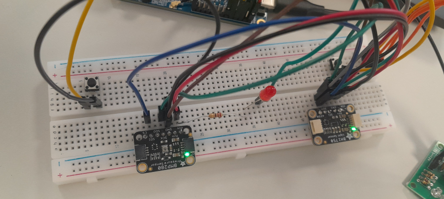 The equipments that were used in this project are: BMP280 sensor, BH1750 sensor, Breadboard, Orangepi, Wires, LED, resistors, Driver ULN2003 and pushbuttons. And the application terminal that i used was visual studio code.