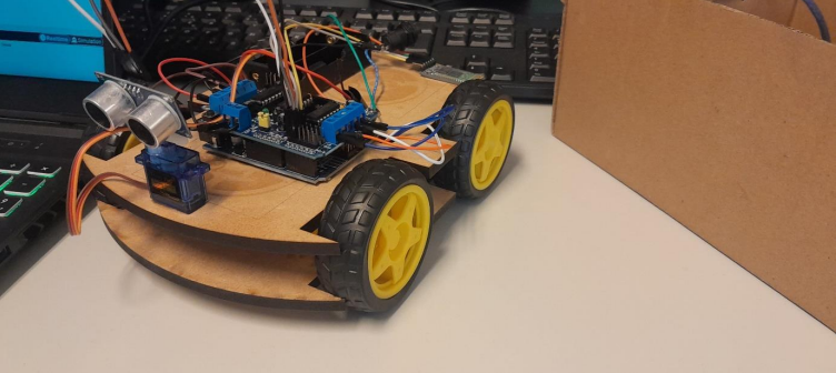 I made a robot car using an Arduino. The robot can move forward, backward, turn left, and turn right. It has obstacle avoidance capabilities using an ultrasonic sensor, and it can also be controlled via Bluetooth and voice commands. You can watch the short creation on youtube by clickingtouching the youtube icon
